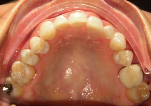 - Missing upper left second bicuspid